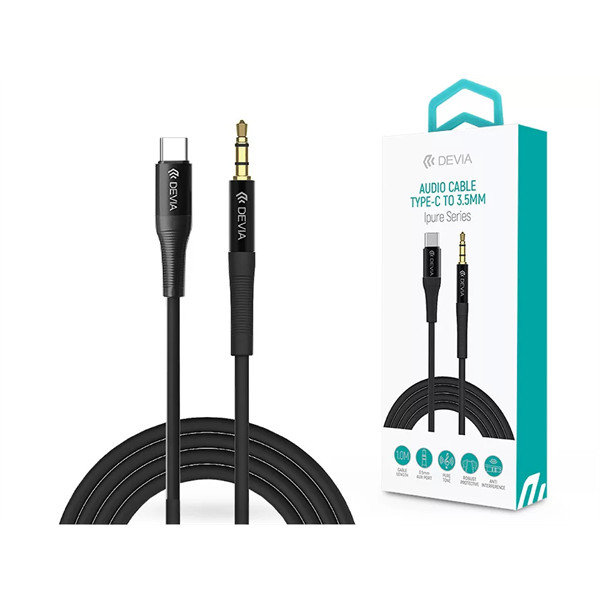 DEVIA 3,5 MM JACK - TYPE-C AUDIO KÁBEL 1 M-ES VEZETÉKKEL - SERIES IPURE AUX AUDIO CABLE - BLACK