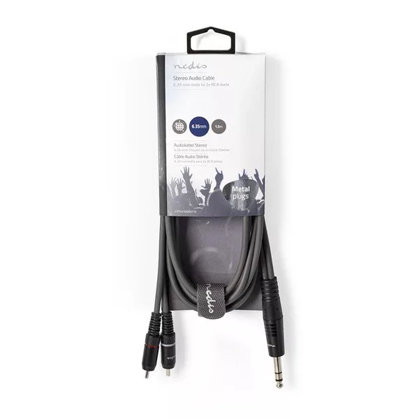 Nedis COTH23300GY15 félprofi XLR audio kábel, 6,35mm sztereo jack dugó - 2x RCA dugó, 1,5m