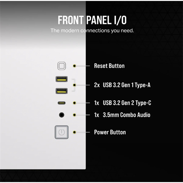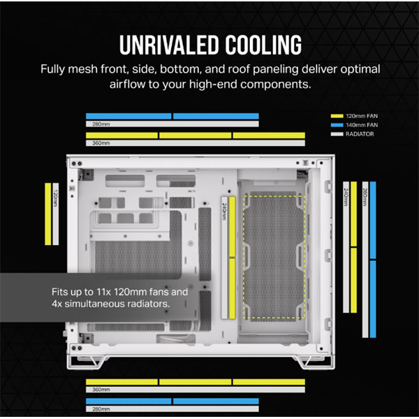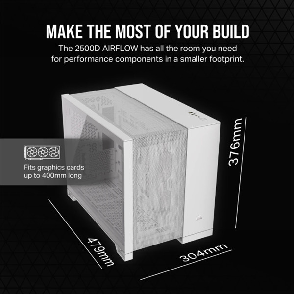 CORSAIR Ház 2500D AIRFLOW, Tápegység nélkül, Edzett Üveg, fehér